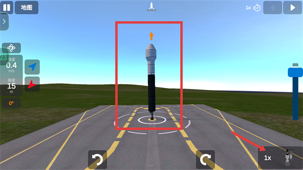 4、進入發射場地的地圖頁面,火箭已處于發射位置,可通過界面功能調整視角,確認火箭狀態無誤后,即可觸發發射操作,推進火箭進入升空流程。