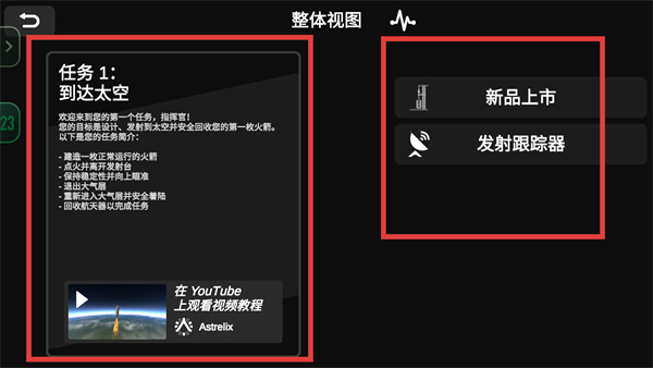 1、首先查看任務的發射要求,明確需完成火箭正常飛行、進入太空等目標,可使用新品上市、發射跟蹤器等功能輔助發射準備。