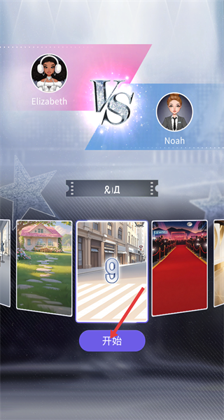 1、進入游戲后,先選擇對戰的對手,再挑選對應的場景,完成前期準備后點擊開始按鈕,進入對應的關卡界面。