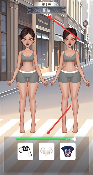 2、在關卡中觀察角色當前的裝扮,從下方提供的服飾選項里,挑選合適的單品為角色進行搭配,逐步完善造型。