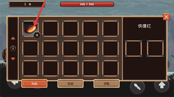 4、進入背包界面,可在物品欄查看已獲取的道具,將常用物品放入快捷欄,方便后續在場景中快速調用,提升冒險過程中的資源使用效率。