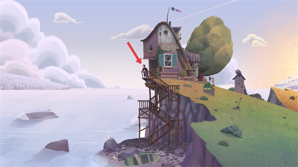 1、游戲以唯美畫風呈現敘事解謎,操控老人移動到木屋區域,這類建筑是關鍵互動點,游戲通過場景探索推進劇情,需跟隨角色移動解鎖回憶片段。