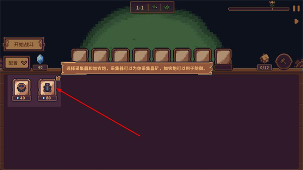 4、在場景界面中找到功能按鈕區域,點擊對應的采集器,使用已收集的資源推進關卡的生存進度。