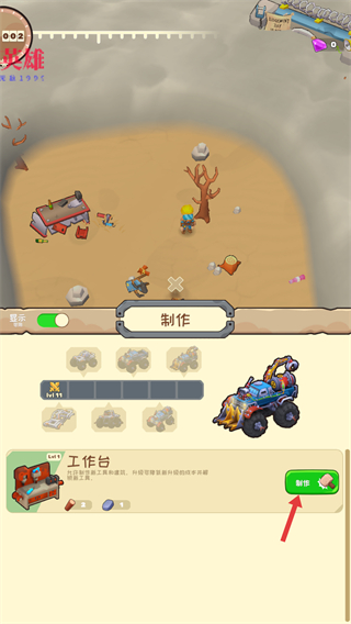 2、喚起制作界面后,選擇【工作臺】選項,查看所需材料是否滿足制作條件,確認材料充足后點擊【制作】按鈕,即可生成對應道具,此步驟是獲取工具的關鍵流程。