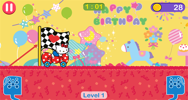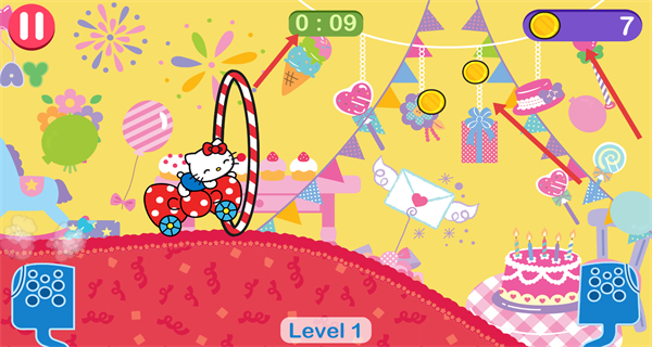 凱蒂貓飛行冒險2無限金幣是一款以經典卡通角色駕駛競速為主題的休閑闖關游戲。明亮鮮艷的色彩與可愛的角色造型,營造出輕松愉快的視覺氛圍。玩家需要操控凱蒂貓駕駛各類載具,在充滿糖果與禮盒的賽道上靈活穿梭,避開沿途障礙并收集星星。多樣化的賽道設計搭配輕快的背景音樂,為玩家提供一段充滿童趣的冒險旅程。