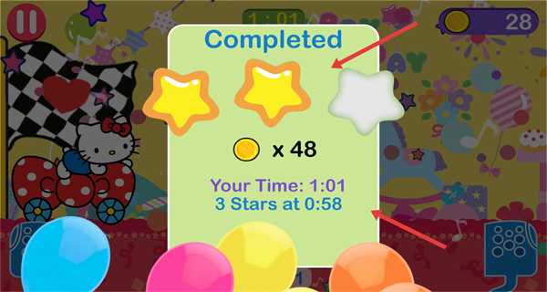 4、完成當前關卡的挑戰,查看界面展示的通關結果,獲取對應的星星評價與金幣獎勵,為后續關卡做準備。