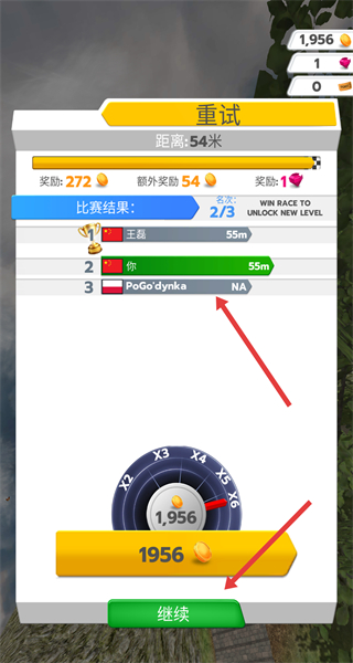 4、比賽結束后查看展示的比賽結果,確認獲得的獎勵,然后點擊繼續按鈕,可進入后續的游戲流程或新的關卡。
