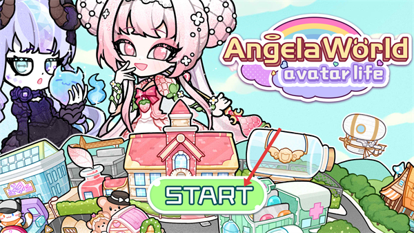 1、進入游戲啟動界面后,點擊START按鈕即可開啟avatar生活玩法,界面呈現的是卡通風格的虛擬世界場景,包含建筑、角色等元素,是玩法的初始入口。