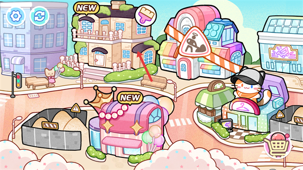 2、進入主場景后,可看到各類建筑設施,帶有NEW標識的是新開放內容,部分建筑可進行裝飾修改,點擊對應建筑可進入其功能模塊,推進虛擬世界的互動。