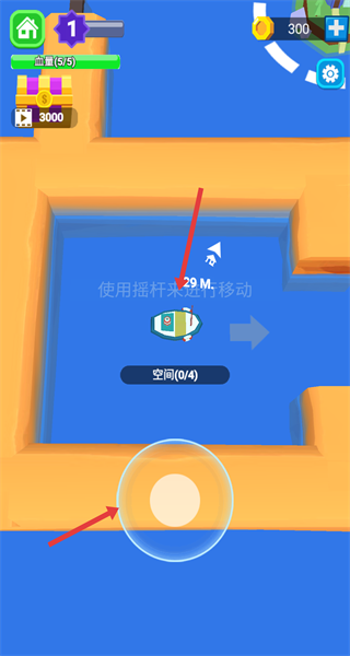 1、進入游戲后,通過操作搖桿控制船只在水域中移動,留意界面顯示的距離提示,調整船只的行進方向,逐步靠近目標區域。