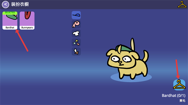 3、進入裝扮衣櫥界面后,可選擇左側的裝飾道具,點擊對應道具即可為寵物佩戴,佩戴后能實時預覽效果,確認樣式后可保存裝扮,豐富寵物的外觀表現。