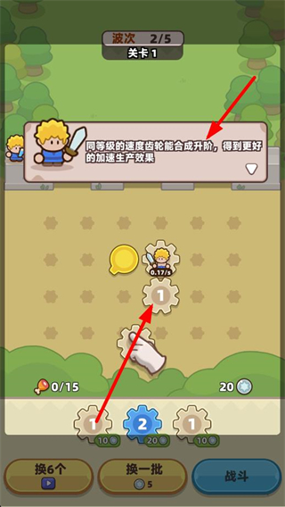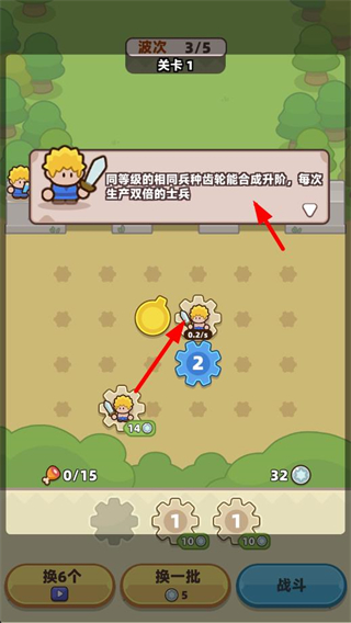 4、后續的關卡將同等級相同兵種的齒輪也能合成升階,每次生產會獲得雙倍的士兵,提升戰斗時的兵力儲備。