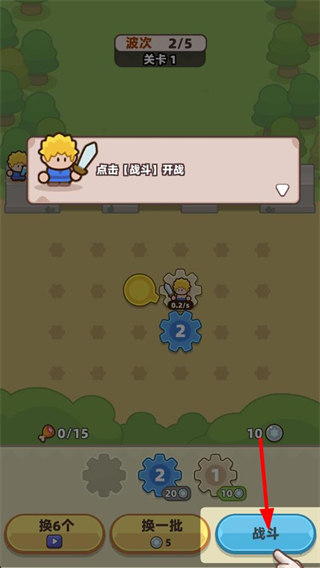 2、完成齒輪的合成操作后,點擊界面下方的戰斗按鈕即可開戰,開啟當前波次的關卡挑戰,推進游戲進度。