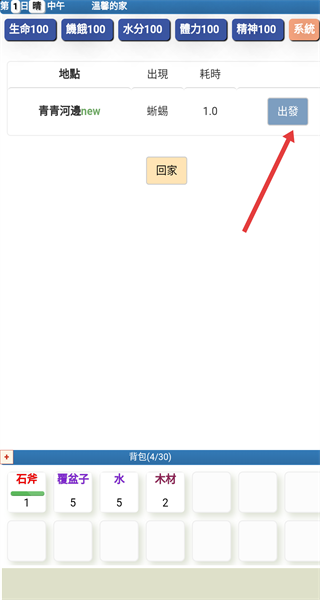 1、在地點選擇界面,找到目標區域對應的出發按鈕,點擊后消耗相應時間前往該區域,開啟該區域的資源獲取等操作。