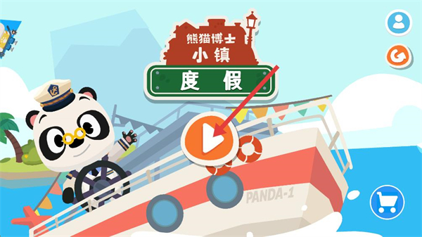 1、進入游戲啟動界面,點擊中間的播放按鈕即可開啟度假玩法,界面右上角設有個人中心、重玩等功能按鈕,可按需調整游戲相關設置。