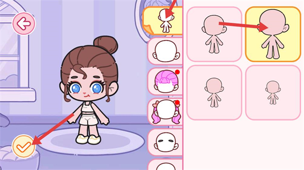 2、在裝扮界面,可切換至身形選擇板塊,點擊對應身形樣式,即可更換角色身形,完成選擇后點擊左下角對勾,確認當前裝扮設置。