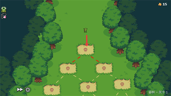 4、在關卡地圖界面,點擊帶有骷髏標識的區域可進入對應戰斗關卡,地圖采用分支路徑設計,不同區域對應不同挑戰,需按路徑推進解鎖后續內容。