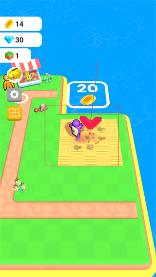 2、看到場地中的金幣標識區域,移動角色前往該區域可獲取20金幣,同時注意場景內的紅心道具,拾取后能提升角色狀態。