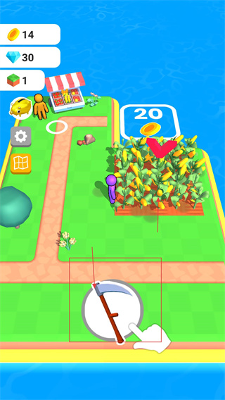 4、留意界面下方的鐮刀工具,點擊后可觸發收割操作,對成熟的作物進行收割,收割后的作物會自動存入背包。