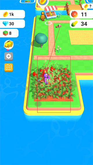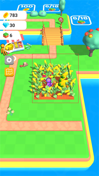 2、進入成熟作物的種植區域,可批量收割該區域作物,收割后的作物會自動存入背包,同時積累更多可交付的物資。