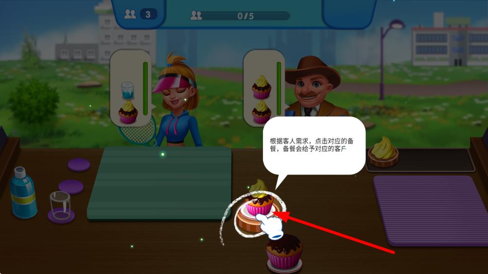 3、根據提示點擊對應餐品,將其提供給需求匹配的顧客,完成顧客的點餐需求,逐步達成關卡目標中服務顧客的數量要求。