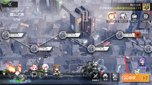 2、在章節界面選擇目標關卡,推進進度可解鎖新關卡,同時注意剩余挑戰次數,通關指定關卡能獲得SSR精英雇員等獎勵,優先推進主線關卡積累資源與角色。