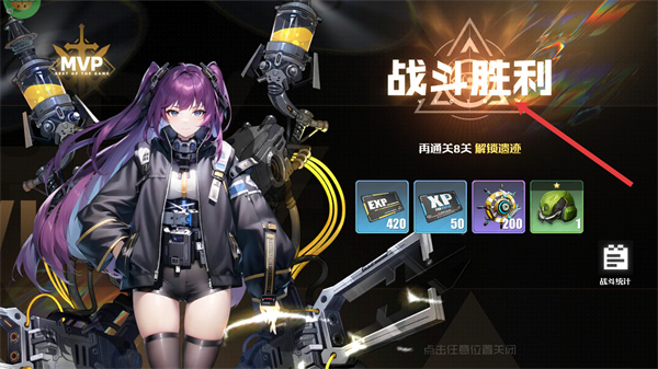 4、戰斗勝利后可獲得經驗、資源等獎勵,同時解鎖新的關卡進度,點擊任意位置可返回界面,還能查看戰斗統計了解表現,繼續推進關卡積累更多獎勵。