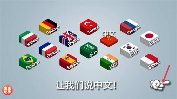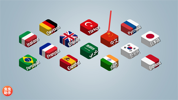 2、在語言選擇界面,可挑選對應國家的語言選項切換游戲語言,選擇中文方塊即可將界面切換為中文顯示,便于更順暢地理解游戲內容與操作。