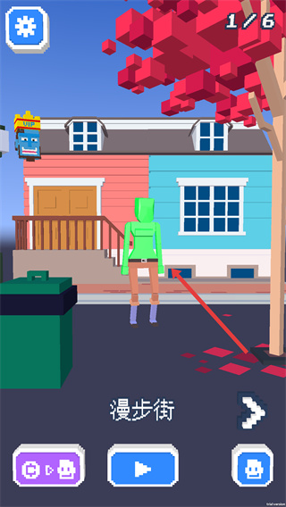 4、6種主題街區存在專屬陷阱機制,商業街的旋轉門需要把握時機側身通過,工地區域的吊鉤會周期性掃過人行道。每個場景最終段設有招牌障礙。
