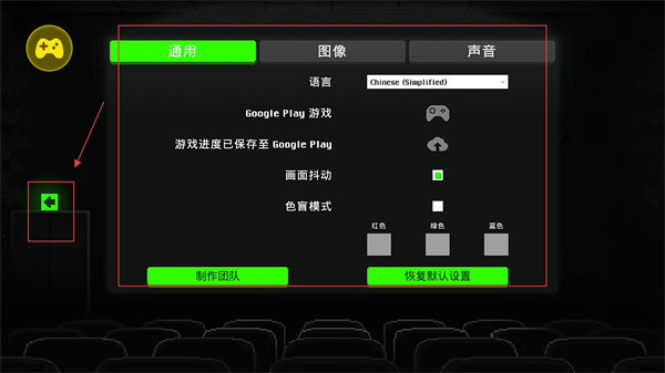 4、語言切換完成后,點擊左側的綠色按鈕可退出設置界面,返回主界面繼續游戲,完成基礎配置調整后可專注于體驗游戲核心玩法。
