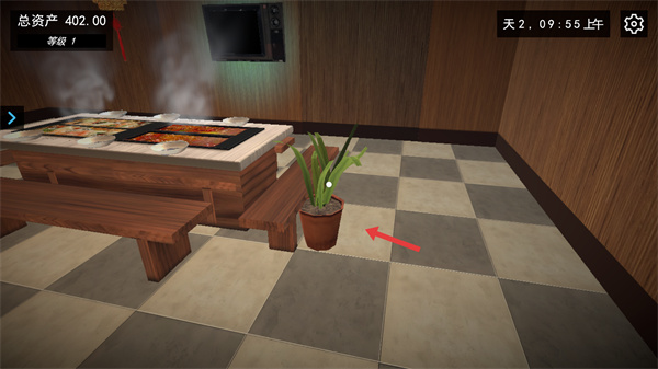 4、完成放置操作后,盆栽已固定在新位置,店鋪布局調整完成,總資產與等級無變化,后續可繼續調整其他家具的位置,打造更舒適的經營環境,助力店鋪的運營。