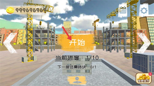 1、查看當前進度與下一層還需磚塊的提示,點擊開始按鈕即可進入建筑操作環節。