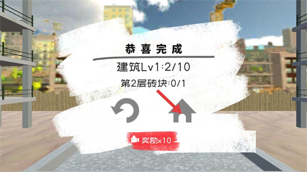 4、完成當前階段后會顯示恭喜完成,點擊對應按鈕可繼續推進第2層磚塊的任務。