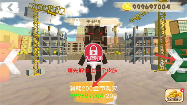 3、切換形象時若遇未獲得的皮膚,需先解鎖上一個皮膚,也可消耗200金幣直接購買該皮膚。
