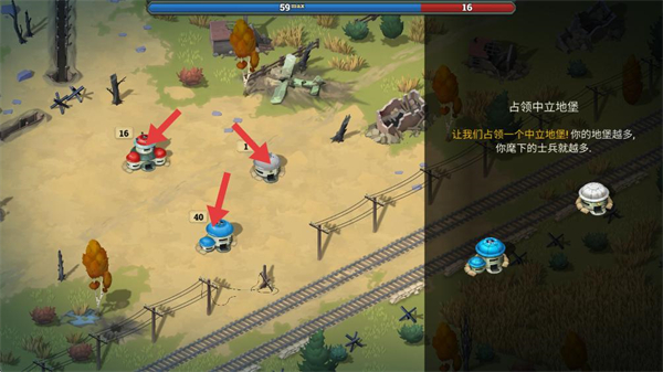 2、優先占領中立位置,占領的中立堡越多,麾下士兵數量會相應增加,可增強己方的兵力儲備優勢。