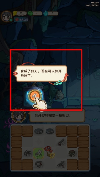 3、合成剪刀類道具后,使用它剪開場景里的紗帳,完成這一步操作后,會解鎖新的互動內容,繼續推進解謎的流程。