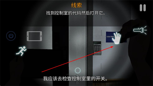 3、控制室門口,查看線索提示我應該去檢查控制室里的開關,確認密碼鎖的位置,準備輸入代碼解鎖。