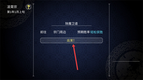 2、進入后顯示【除魔衛道】任務,前往地點是宗門周邊,預期勝率為輕松獲勝,點擊出發按鈕,即可前往該區域完成除魔任務,獲取對應的獎勵。