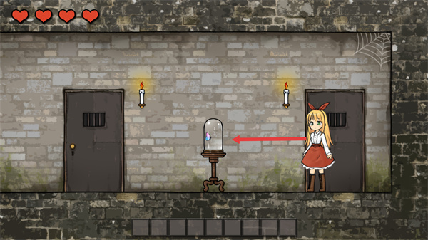 4、場景出現兩扇帶鐵欄的門,中間有帶玻璃罩的裝置,角色位于右側區域,按照指引向該裝置互動,可觸發對應的道具或劇情,繼續推進游戲的探索進程。