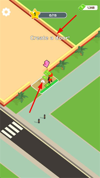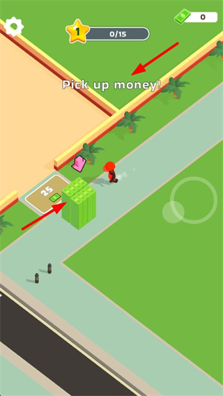 1、操控角色拾取場景里的金錢,積累初始資源,為后續創建店鋪相關設施做準備。