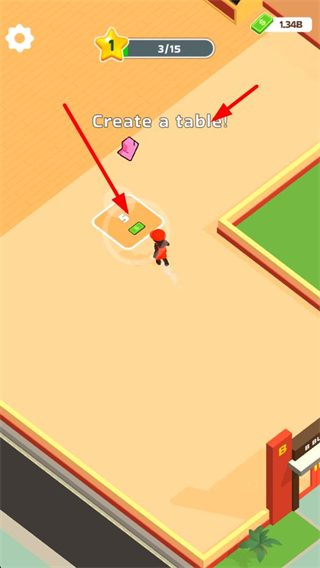 3、繼續消耗資源,根據指引創建桌子,完善店鋪的內部設施,提升店鋪的可運營程度。