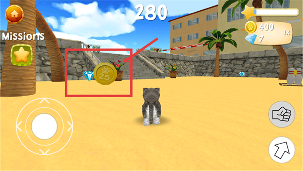 1、游戲界面左側的方向控制鍵可操控貓咪移動,右側的箭頭鍵能讓貓咪做出互動動作,熟悉操作探索場景。