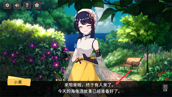 1、進入界面后,會看到名為小黃的角色,她會提示已準備好海龜湯故事,此時可等待后續互動,留意角色對話獲取初始劇情信息。