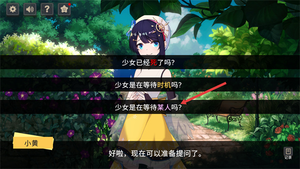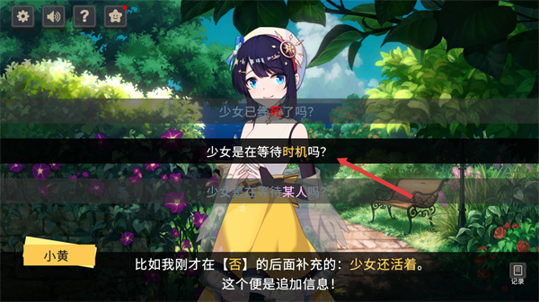 3、提問后小黃會針對問題給出回復,同時補充追加信息,比如回復【否】后會說明少女還活著,需記錄這些信息推進推理。