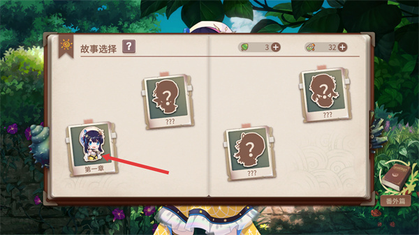 4、打開故事選擇界面,能看到已解鎖的第一章,其余章節顯示問號待解鎖,可先選擇第一章開始體驗,后續逐步解鎖其他內容。
