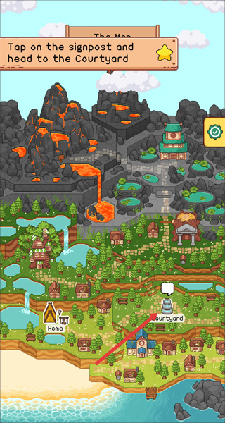 3、探索過程完全自由,玩家可以隨時選擇前往瀑布釣魚或是深入火山尋找礦脈。沒有強制的主線任務壓力,所有活動以舒緩的節奏自然展開。