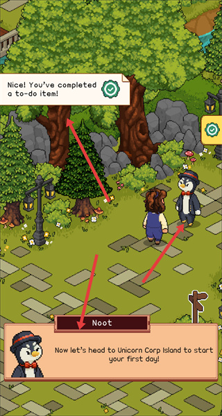 4、到達庭院后,與出現的角色互動,完成當前待辦任務,同時根據角色提示,準備前往下一個目標地點。