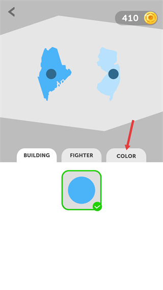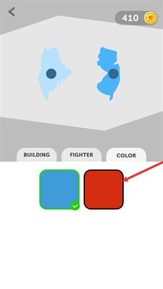 3、在【COLOR】標簽頁下,除已選定的藍色外,還有紅色等顏色選項,可根據需求切換己方區域的顏色標識,切換后即可應用新顏色,回到地圖界面繼續進行占領操作。