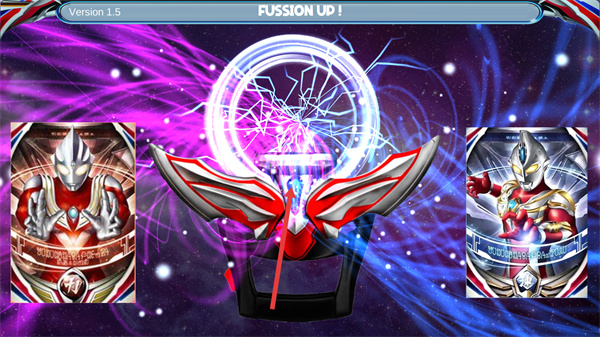 4、完成卡片放置后,變身器會啟動融合特效,界面顯示【FUSSION UP】,等待特效結束即可完成融合,獲得對應的融合形態,推進游戲進程。