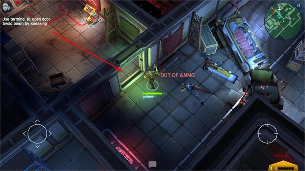 3、行動過程中避開激光射線,同時注意彈藥狀態,若出現彈藥耗盡提示,及時調整策略,依靠潛行等方式規避危險,保障角色安全。